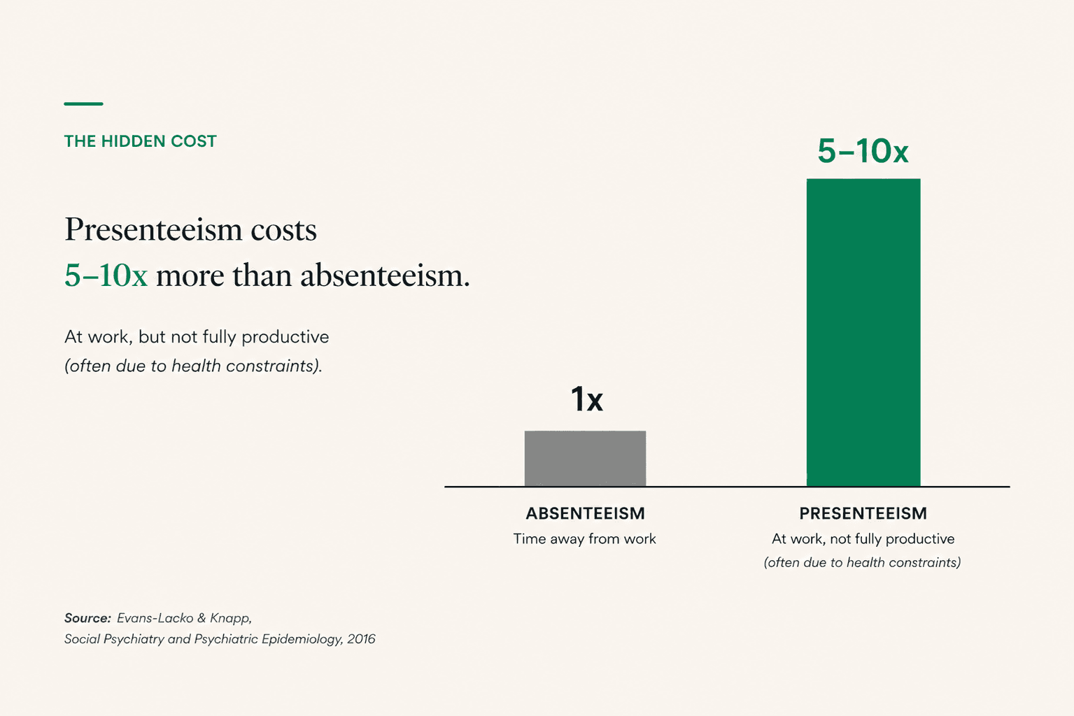 First, awareness, but more specifically, the difficulty of quantifying the problem. Even when businesses know that poor health affects productivity, they struggle to put a number on how big the impact is, or to isolate one cause from many interrelated factors.